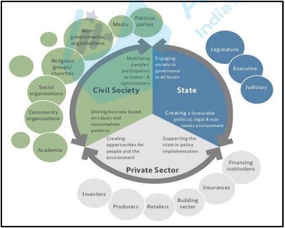 Typically, the stakeholders of governance at national level can be categorised into three broad categories – State,
